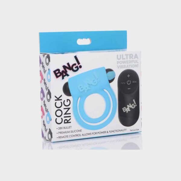 Bang Silicone Cock Ring & Bullet W/ Remote Control Blue